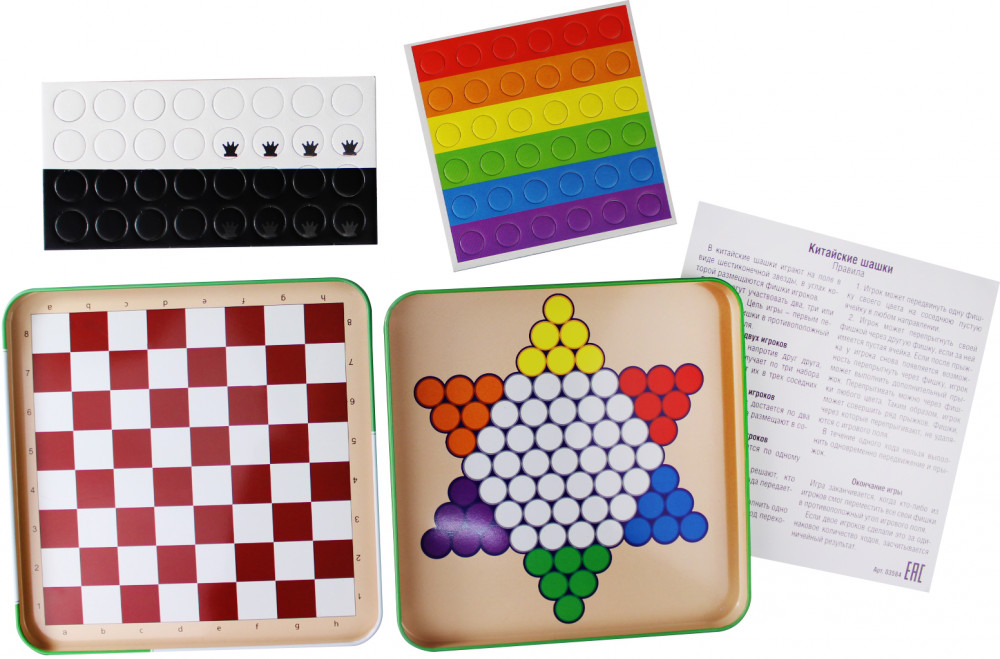 Игра представляет собой коробку, с каждой из внутренних сторон которой — поле для игры в Шашки и Китайские шашки.