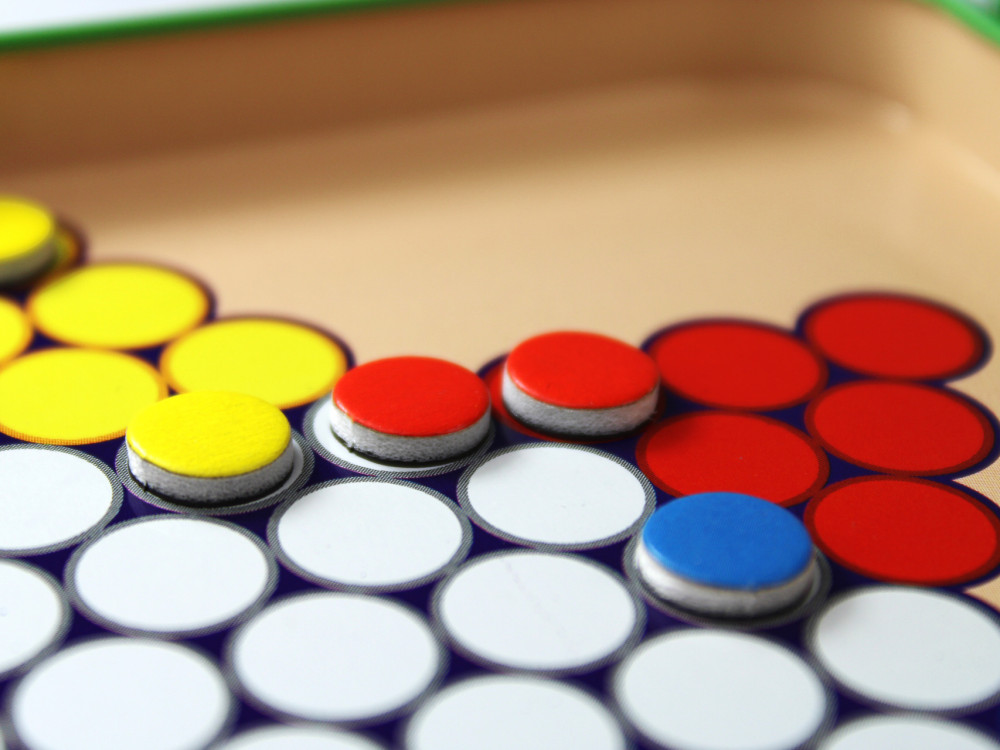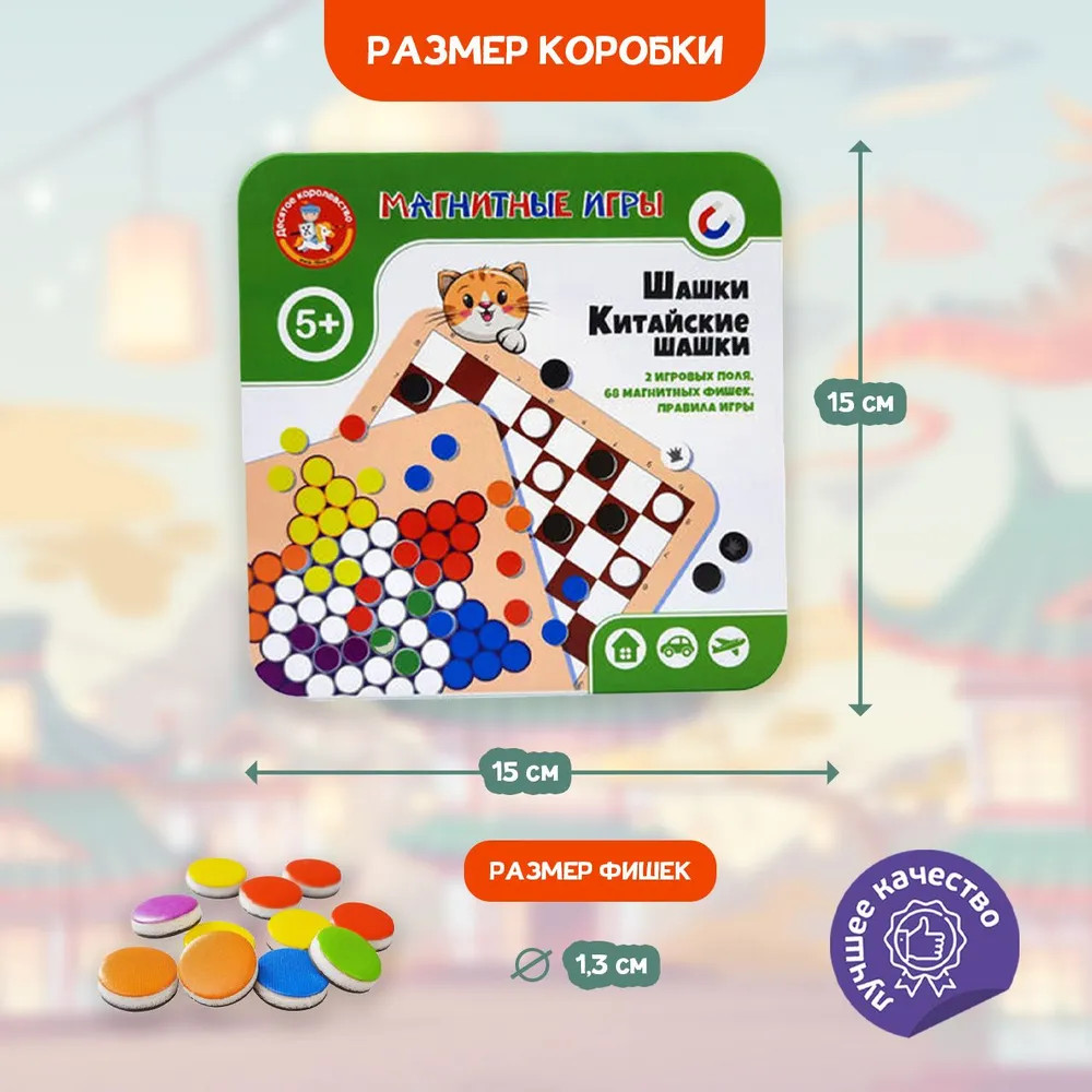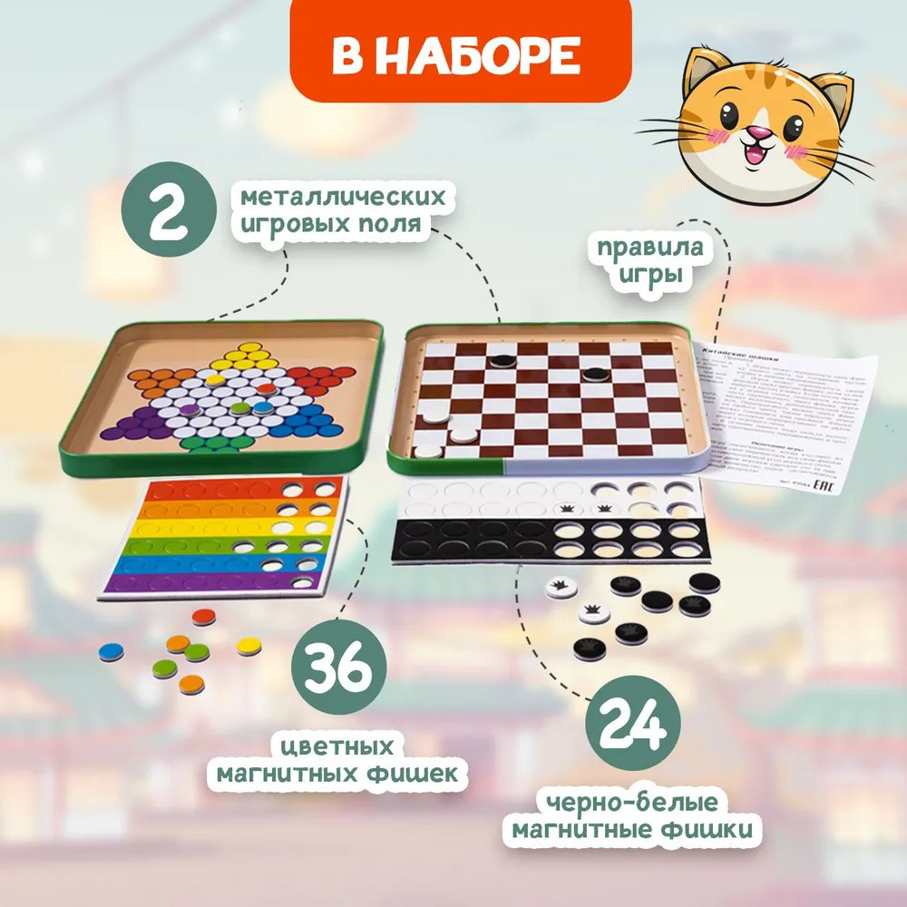 Играйте дома и в дороге, ведь магнитные фишки крепко держатся на металлическом поле. А ещё их так удобно хранить в компактной жестяной коробочке!