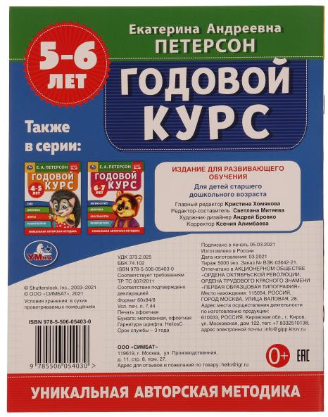 💳 Оплатить за товар можно при получении 🇰🇿 Есть бесплатная доставка по Казахстану от 1 дня 🎁 Копите бонусы с каждой покупки Серия: Годовой курс обучения Учебное пособие «Е. А. Петерсон. Годовой курс, 5-6 лет» — занимательная развивающая книга для детей: |