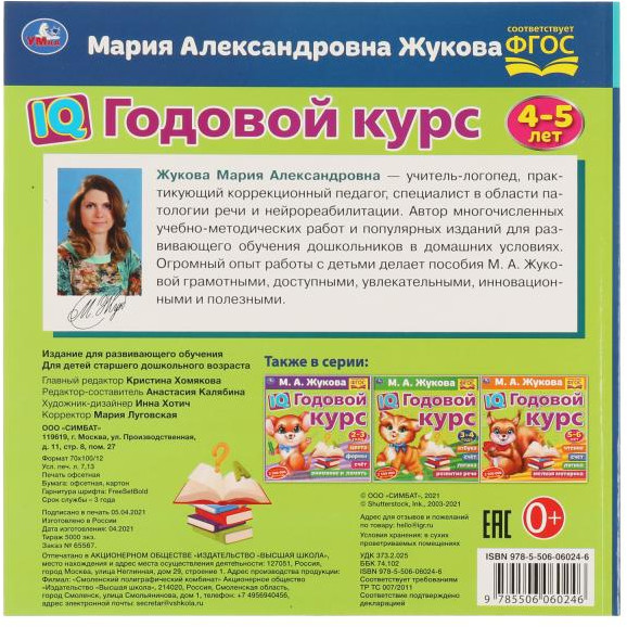 💳 Оплатить за товар можно при получении 🇰🇿 Есть бесплатная доставка по Казахстану от 1 дня 🎁 Копите бонусы с каждой покупки Серия: Годовой курс обучения Пособие «М. А. Жукова. IQ годовой курс, 4-5 лет» — развивающая книга в мягкой обложке, которая непременно понравится ребёнку: |