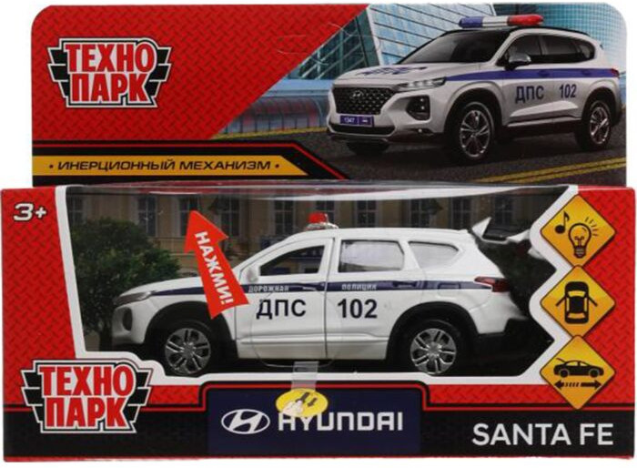 Технопарк Машина «Hyundai Santa Fe. Полиция»В данный момент этот товар отсутствует в продаже. Возможно, у нас найдется аналогичный или похожий товар здесь. Металлическая модель «Hyundai Santa Fe. Полиция» ТМ «Технопарк» — прекрасный подарок для ребёнка: |
