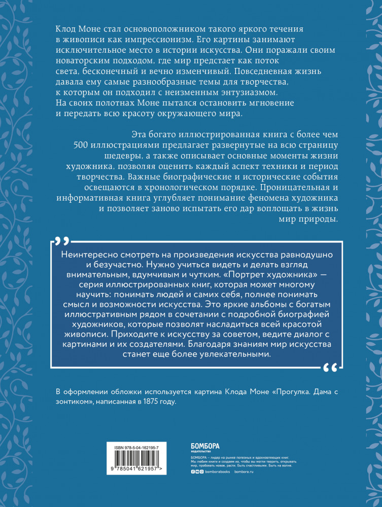 Серия: Портрет художника Эта книга о Клоде Моне повествует о творческой судьбе одного из самых известных художников-импрессионистов, описывает историю его жизни в культурном контексте современного ему общества, позволяет проследить его творческий путь к вершинам мастерства и увидеть формирование индивидуального стиля.   |