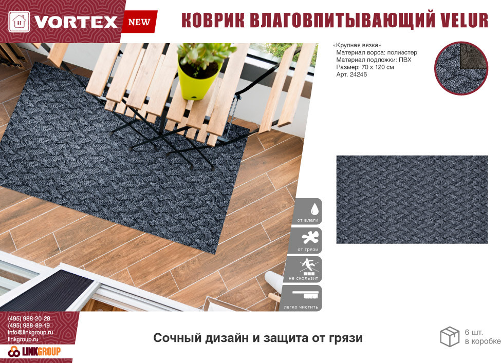 VORTEX Коврик влаговпитывающий «Крупная вязка»В данный момент этот товар отсутствует в продаже. Возможно, у нас найдется аналогичный или похожий товар здесь. Серия: Velur Придверный влаговпитывающий коврик «Vortex», выполненный из высококачественного полиэстера. Очищает обувь от грязи и задерживает влагу при входе в помещение, не скользит. Способ нанесения рисунка фотопечать. |