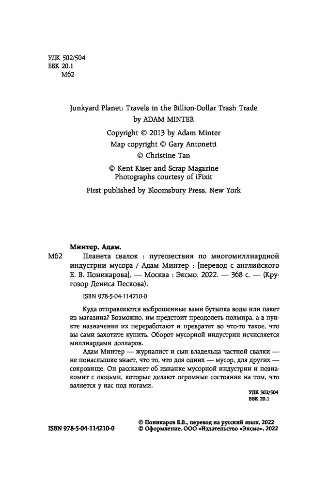 💳 Оплатить за товар можно при получении 🇰🇿 Есть бесплатная доставка по Казахстану от 1 дня 🎁 Копите бонусы с каждой покупки Серия: Кругозор Дениса Пескова Куда отправляются выброшенные вами бутылка воды или пакет из магазина? Возможно, им предстоит преодолеть полмира, а в пункте назначения их переработают и превратят, например, в чехол для телефона или в деловой костюм, и вам вновь захочется их приобрести. Оборот мусорной индустрии исчисляется миллиардами долларов, а объемы зеленых инвестиций растут с каждым годом. |