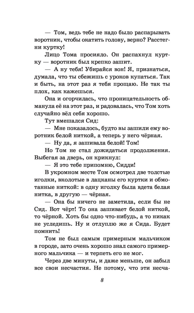 В данный момент этот товар отсутствует в продаже. Возможно, у нас найдется аналогичный или похожий товар здесь. Серия: Детская библиотека (новое оформление) Повесть Марка Твена «Приключения Тома Сойера» с удовольствием перечитывают не только сверстники главного героя, но и их родители, и даже бабушки и дедушки. Ведь главный герой — такой же, как и все мальчишки: неистощимый на выдумки, проказливый, но честный, решительный и надёжный. Когда пришло время для настоящих испытаний — выступить в защиту несправедливо обвинённого или спасти подругу из лабиринта страшной пещеры — он выбрал единственно верный путь.