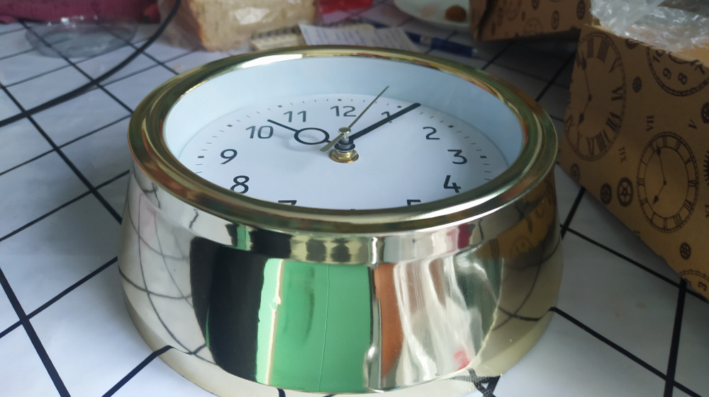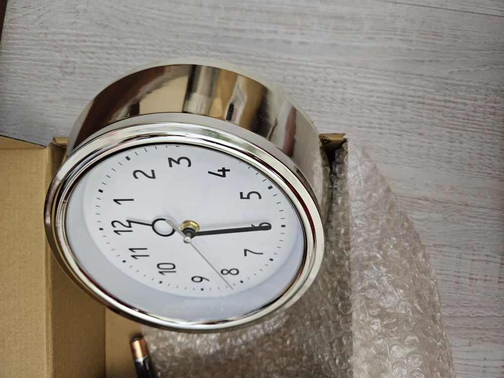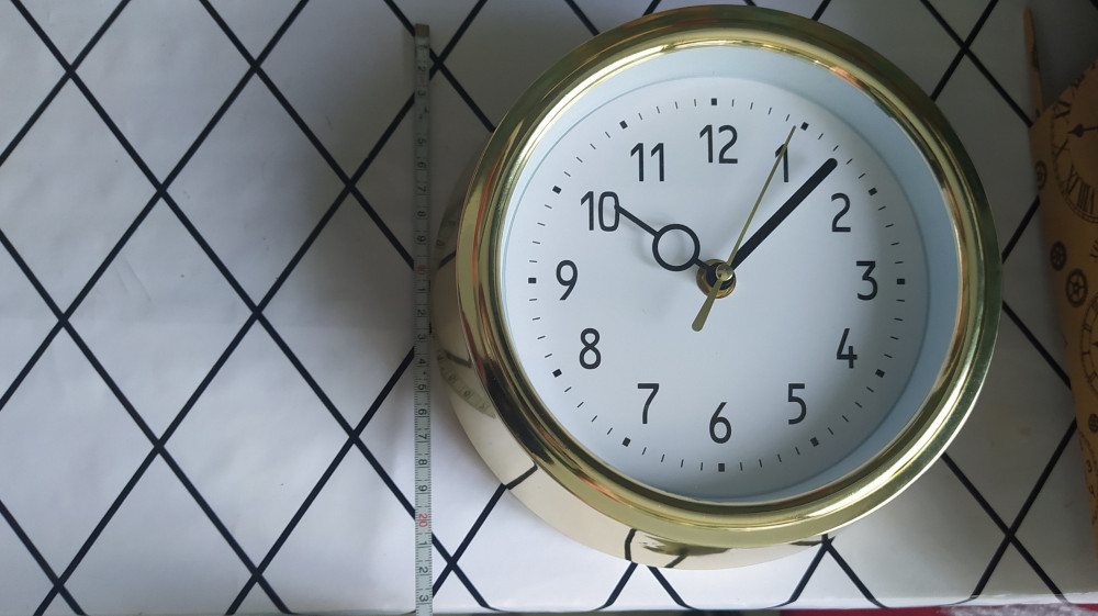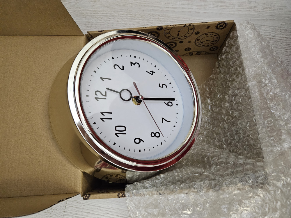Часы маленькие, в диаметре 22 см. Боковина широкая.