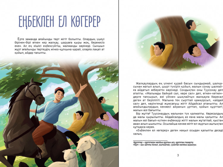 💳 Оплатить за товар можно при получении 🇰🇿 Есть бесплатная доставка по Казахстану от 1 дня 🎁 Копите бонусы с каждой покупки Ерте, ерте, ерте заманда, ешкі құйрығы келте заманда, бір орта шаруалы адам өмір сүріпті. Сол адамның үш баласы болыпты. Күн өтіпті, ай өтіпті, күндерде бір күн бұл адам ауруға шалдығып, өлер халге жетіп, өлер алдында, көзінің тірісінде, өз қолымен бар дүниесін үш баласына бөліп бермек болып, үш баласын қасына шақырып алады. Сонан балаларына кеңес етіп, сөзін бастайды: «Өмір өтті, уақыт жетті, мен енді өлер халге келдім, енді өз қолыммен тең етіп, дүниені бөліп бергелі отырмын», — деп сөзін аяқтады... |