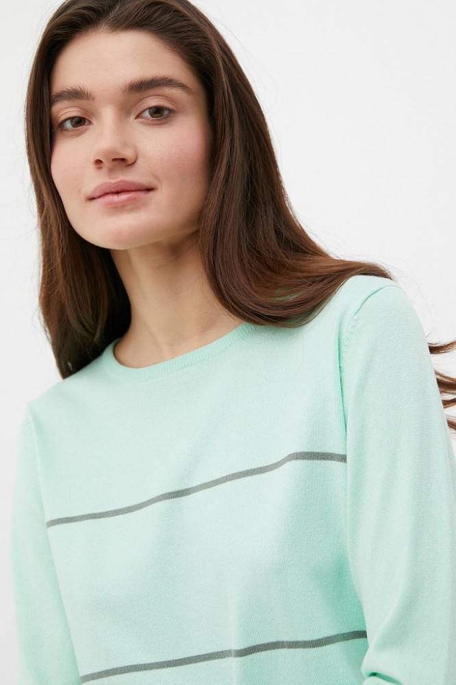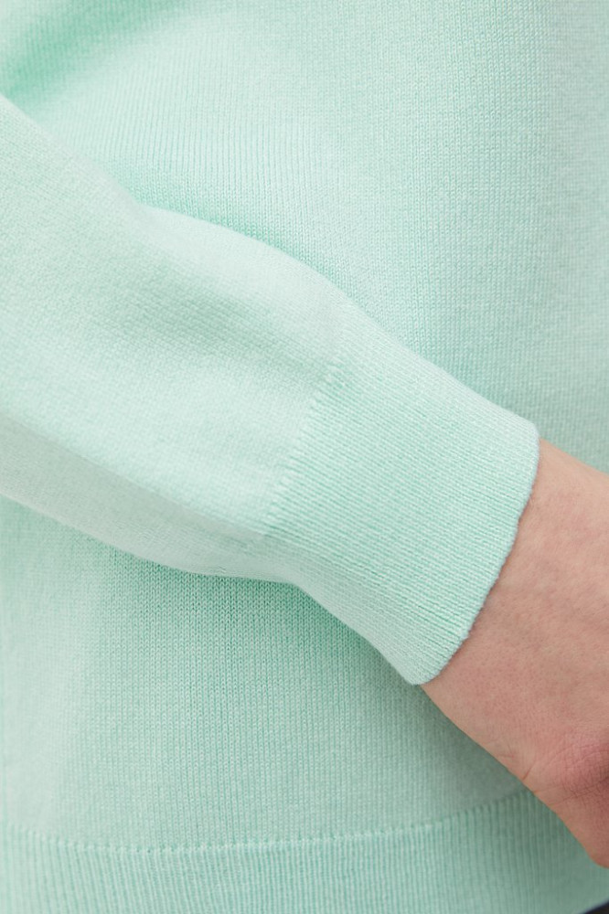 Хороший джемпер, очень мягкий, мятный цвет нежный. Идет размер в размер, даже слегка большемерит. Резинки плотные, нигде ничего не топорщится. И в офис можно, и в гости, и на вечеринку - дождик вместе шарфика и нарядно.