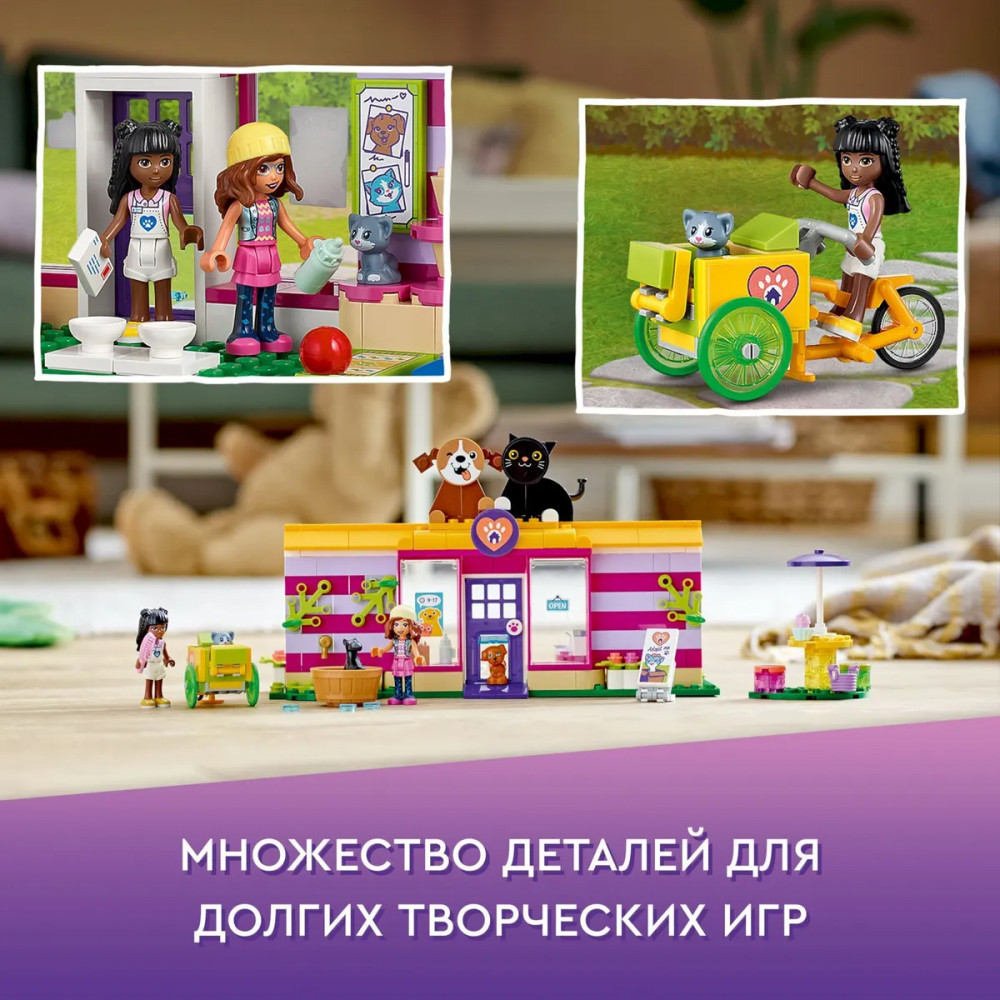 LEGO (ЛЕГО) Конструктор Friends 41699 Кафе-приют для животных. Pet Adoption CaféВ данный момент этот товар отсутствует в продаже. Возможно, у нас найдется аналогичный или похожий товар здесь. Серия: LEGO Friends Помогите детям подарить животным дом с коллекционной игрушкой «Кафе-приют для животных» Lego Friends. Любящие зверей дети в возрасте от 6 лет помогают Приянке спасти брошенных питомцев и доставить их в приют, где можно ухаживать за животными и играть с ними. Малышам понравится выбирать питомца для Оливии, которого она сможет забрать домой. |