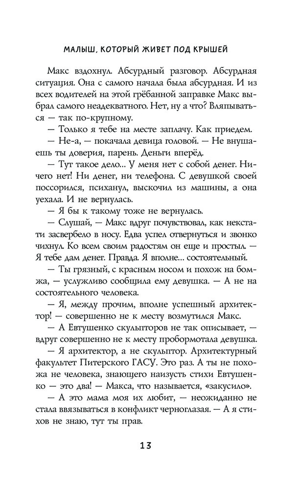 Малыш, который живет под крышейВ данный момент этот товар отсутствует в продаже. Возможно, у нас найдется аналогичный или похожий товар здесь. Серия: Романтика с веселой приправой У вас нет шансов не влюбиться в героев этой книги!Женщина и мужчина случайно встретились в непогожий день на автозаправке, и вся прошлая жизнь словно исчезла, растаяла, не оставив ни малейшего следа. Страсть оглушила их, отняла благоразумие, заставила совершать фантастические поступки, которые со стороны понять просто невозможно. Любовь для них — катастрофа. Они крепко держатся за руки, но, кажется, только для того, чтобы ненароком не убить друг друга... |