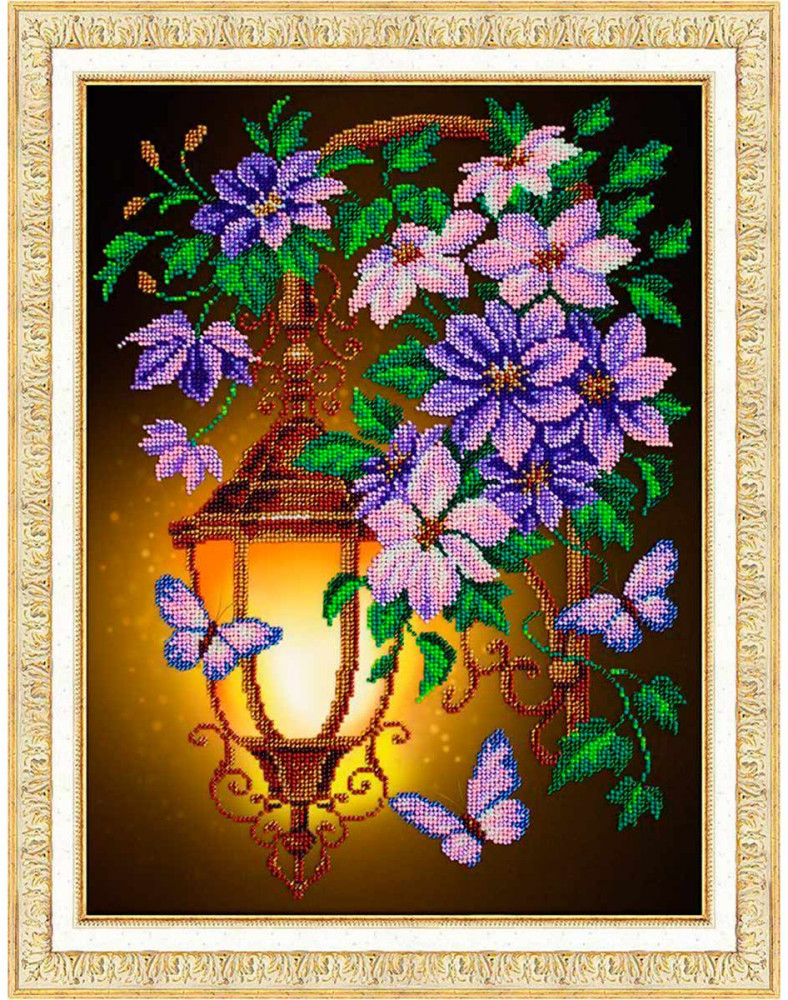 Паутинка Набор для вышивания бисером «Фонарик и клематисы»-20%