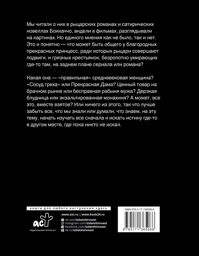 Средневековье в юбке. Женщины эпохи СредневековьяЕкатерина Александровна Мишаненкова В данный момент этот товар отсутствует в продаже. Возможно, у нас найдется аналогичный или похожий товар здесь. Серия: История и наука Рунета Мы читали о них в рыцарских романах и сатирических новеллах Боккаччо, видели в фильмах, разглядывали на картинах. Но единого мнения как не было, так и нет. Это и понятно — что может быть общего у благородных прекрасных принцесс, ради которых рыцари совершают подвиги, и грязных крестьянок, безропотно умирающих где-то там, на заднем плане сериала или романа? |