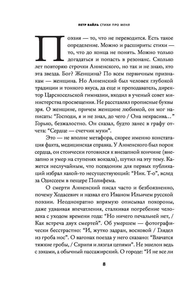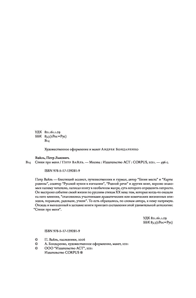 💳 Оплатить за товар можно при получении 🇰🇿 Есть бесплатная доставка по Казахстану от 1 дня 🎁 Копите бонусы с каждой покупки Серия: Весь Петр Вайль Петр Вайль — блестящий эссеист, путешественник и гурман, автор «Гения места» и «Карты родины», соавтор «Русской кухни в изгнании», «Родной речи» и других книг, хорошо знакомых нашему читателю, написал книгу в необычном жанре, суть которого определить непросто. Он выстроил события своей жизни по русским стихам XX века: тем, которые когда-то оказали на него влияние, «становились участниками драматических или комических жизненных эпизодов, поражали, радовали, учили». То есть обращались, по словам автора, к нему напрямую. Отсюда и вынесенный в заглавие книги принцип составления этой удивительной антологии: «Стихи про меня». |