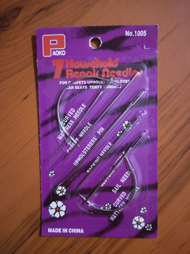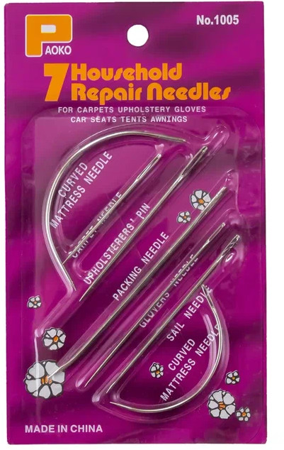 Paoko Иглы для ремонтаВ данный момент этот товар отсутствует в продаже. Возможно, у нас найдется аналогичный или похожий товар здесь. Набор включает в себя 7 стальных игл разных типов, подходящих для ремонта и шитья одежды, а также матрасов, подушек, мебельной обивки, книжных переплетов, чехлов, тентов и других изделий. Иглы изготовлены из высокоуглеродистой стали с хромированным покрытием. Они очень прочные и не подвержены коррозии. При работе с иглами рекомендуется использовать наперсток для защиты пальцев от случайных повреждений. |