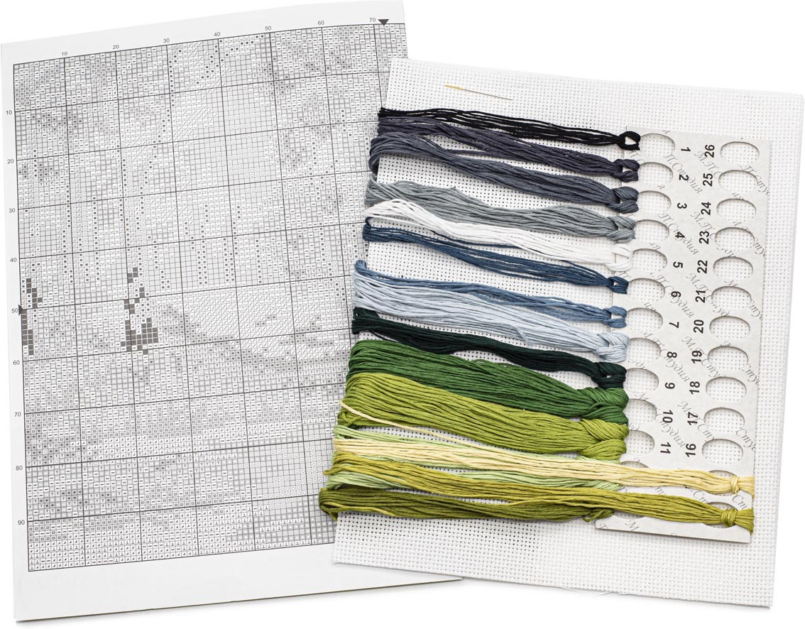 В наборе: канва Aida 14, нитки мулине, разобранные на органайзере, игла, схема, инструкция на 4 языках.