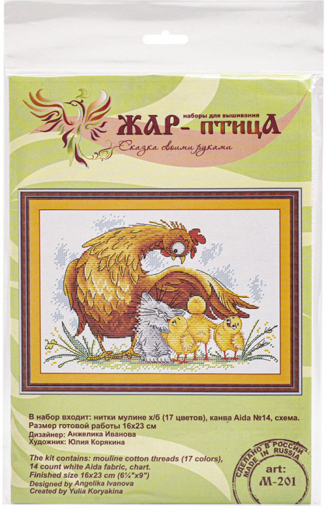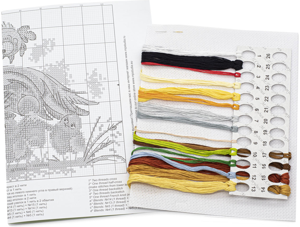 В наборе: канва Aida 14, нитки мулине, разобранные на органайзере, игла, схема, инструкция на 4 языках.