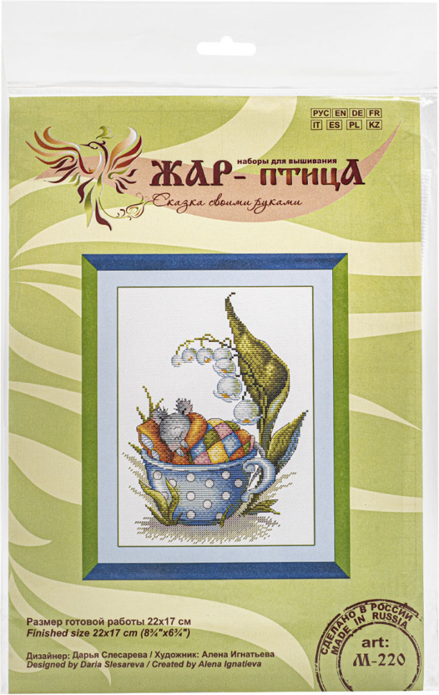 В наборе: канва Aida 14, нитки мулине, разобранные на органайзере, игла, схема, инструкция на 4 языках.