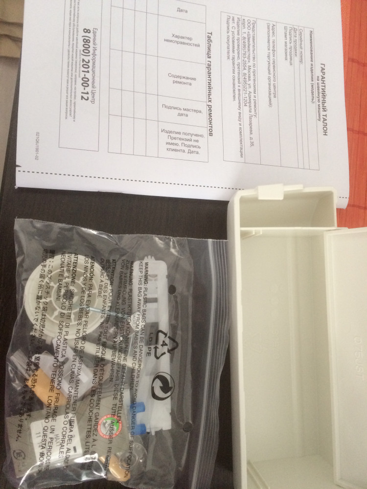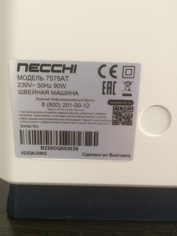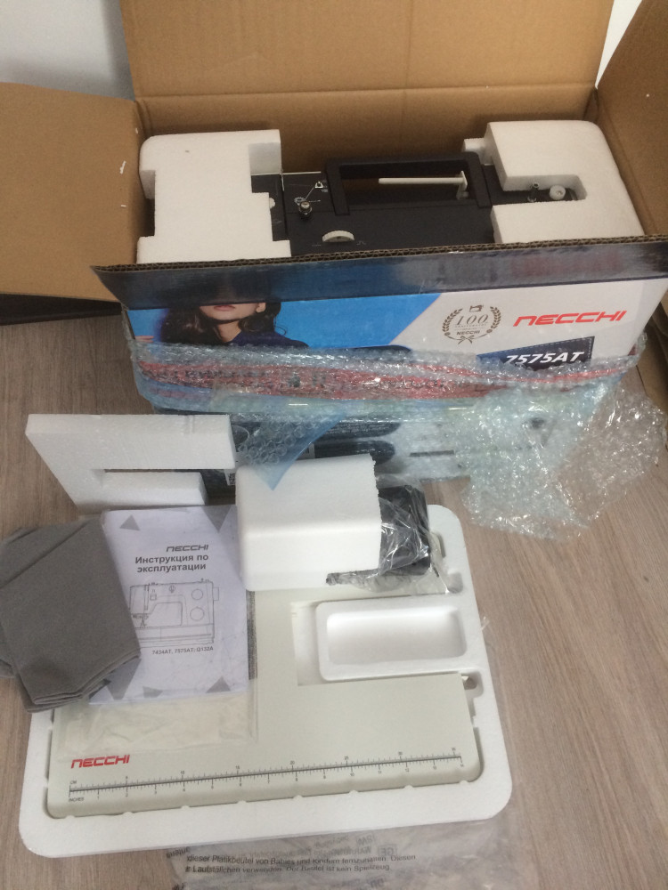 Очень довольна машинкой как слон)). Выбирала долго из разных марок, смотрела обзоры в интернете и остановилась на этой Некки 7575АТ. Видимо номер модели 7575 и 7474АТ,а также Q132A- это одна и та же модель( отличие в цвете корпуса),даже на инструкции указаны эти три модели.Произведено во Вьетнаме.На Флип была хорошая скидка -25%,благодаря чему я приобрела эту замечательную машину. Для такого функционала+столик+цена со скидкой-это удача🍀! Шьёт прекрасно,инструкция очень понятная.Мощность 90Вт при шитье чувствуется сразу),чуть громче,чем Janome. Столик имеет разметку в сантиметрах и дюймах (инчи). Скорость шитья регулируется вашим нажатием на педаль. Ещё не все функции освоила,буду учиться. Вес с коробкой и пенопластом 8,4кг; вес машинки,столика,педали и доп.комплектующих 7.4кг. Все комплектующие вложены в съемный столик-все как в описании.В инструкции на последней странице гарантийный талон,гарантия 1 год со дня покупки. Коробка снаружи была упакована в пупырчатую пленку-Флип всегда очень хорошо упаковывает все заказы👍🏻,за что отдельная благодарность! Курьер все доставил в целости,благодарю 🏆🌞 Фото прилагаю: