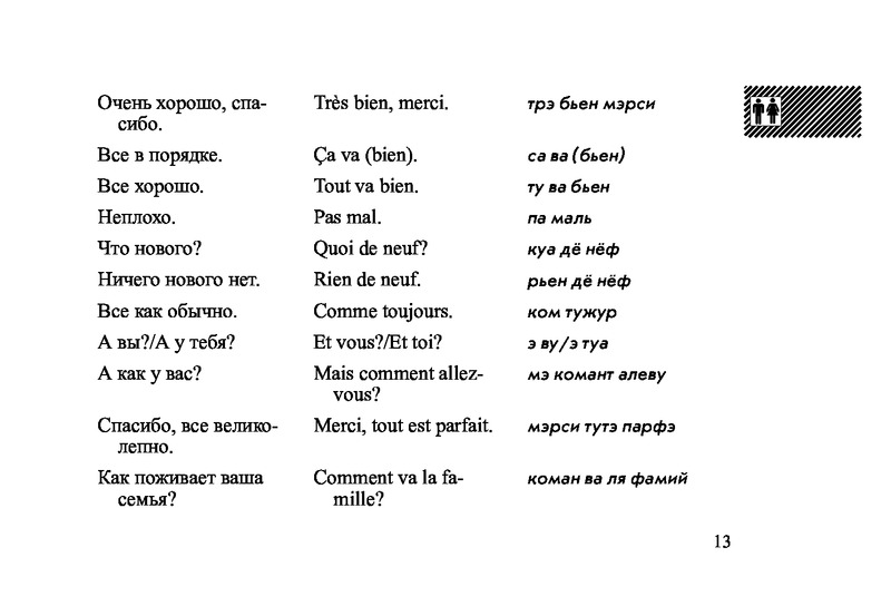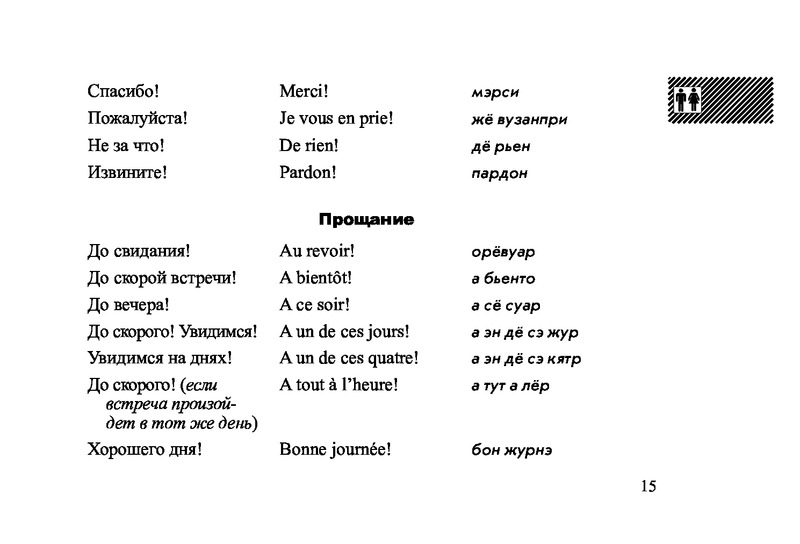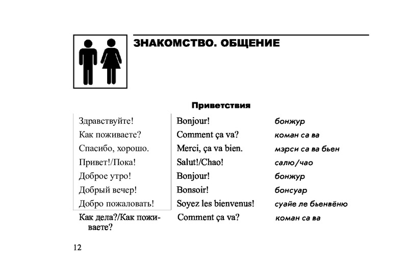 Русско-французский разговорникВ данный момент этот товар отсутствует в продаже. Возможно, у нас найдется аналогичный или похожий товар здесь. Серия: Слово в кармане Разговорник содержит наиболее употребительные слова и выражения, которые могут использоваться в различных ситуациях путешествия, а также познавательную информацию о стране. Материал подобран и сгруппирован по тематическому принципу, что значительно облегчит пользование разговорником. Произношение французских слов передано транслитерацией русскими буквами. Для широкого круга читателей. |