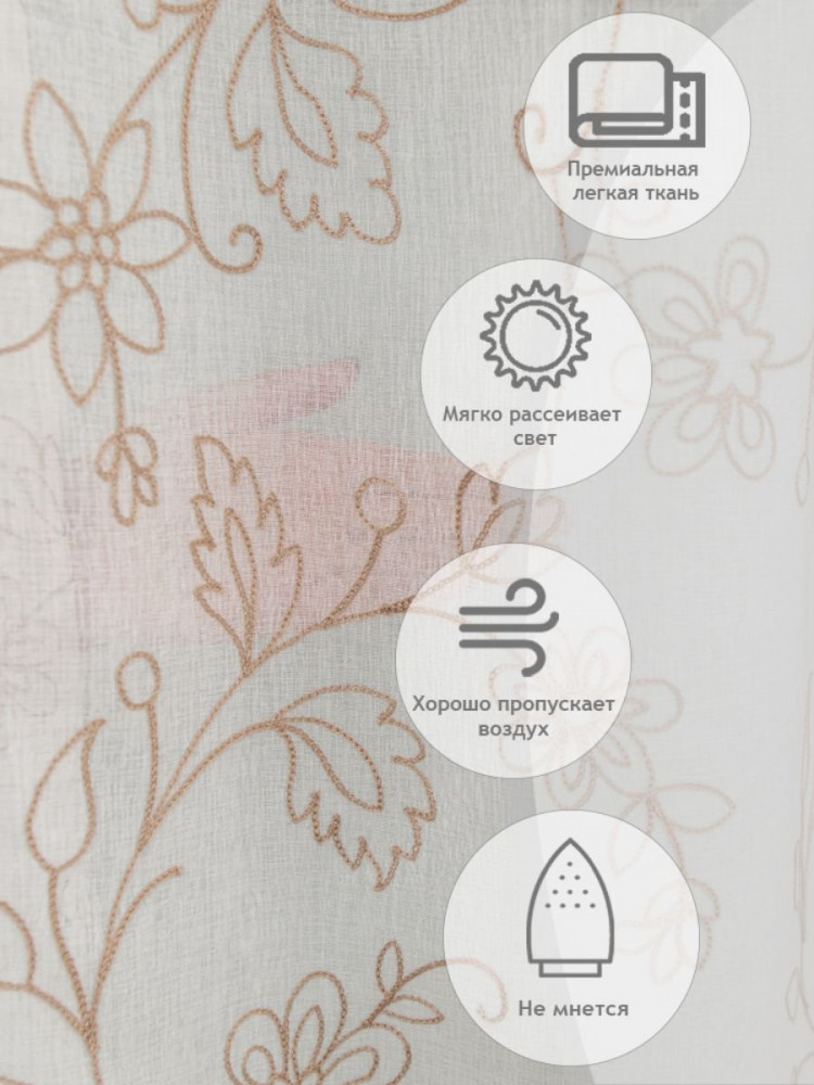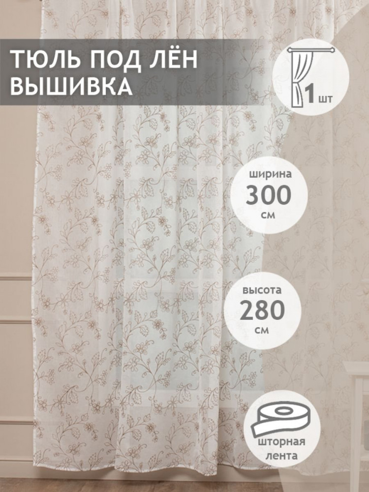 Тюль торговой марки Amore Mio изготовлен из ткани, структура которой имитирует натуральный лен. Тенденции оформления дома в натуральных тканях сейчас особенно актуальны, а изящная вышивка добавит яркий акцент в любой интерьер.