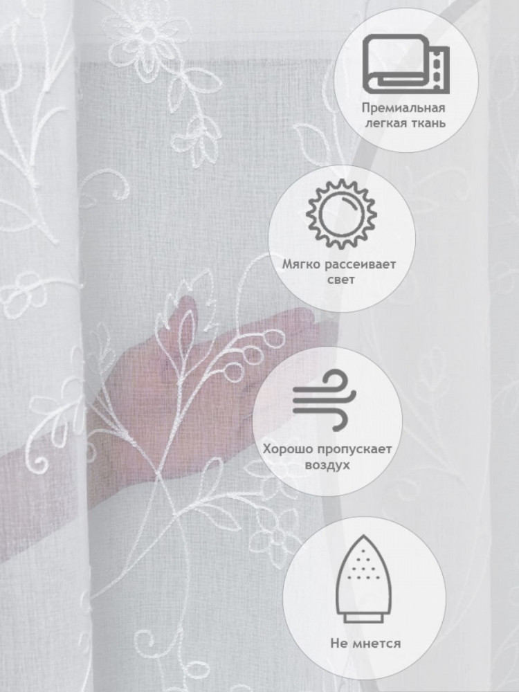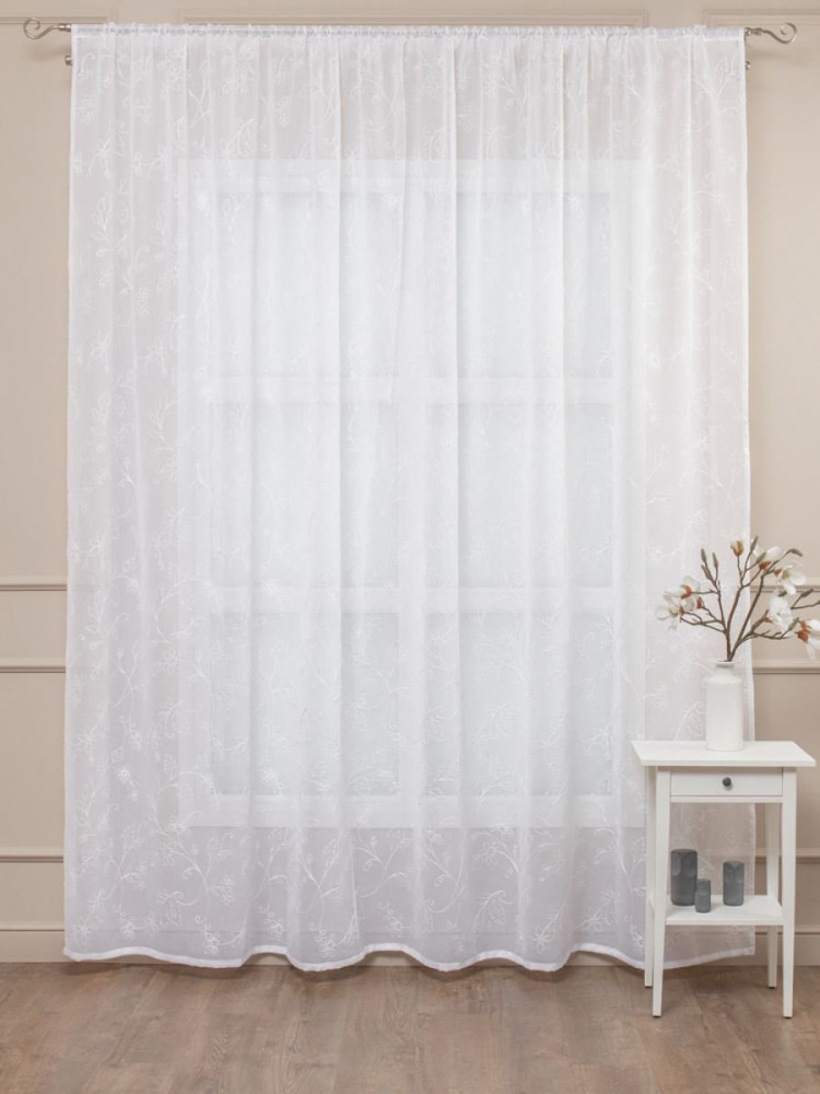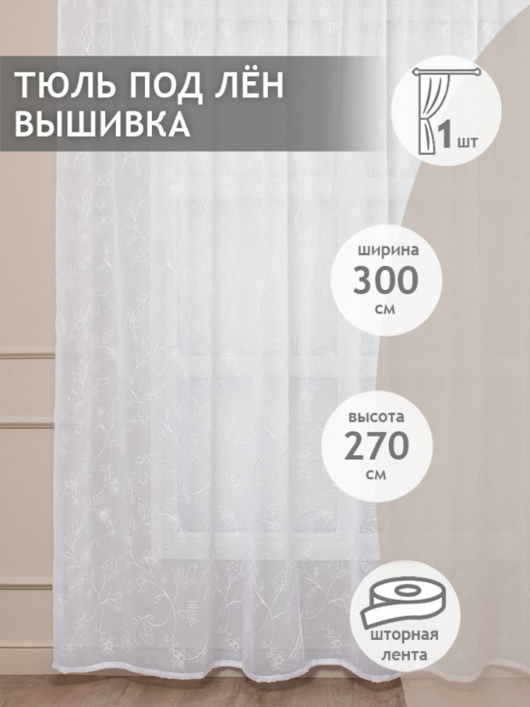 Тюль торговой марки Amore Mio изготовлен из ткани, структура которой имитирует натуральный лен. Тенденции оформления дома в натуральных тканях сейчас особенно актуальны, а изящная вышивка добавит яркий акцент в любой интерьер.