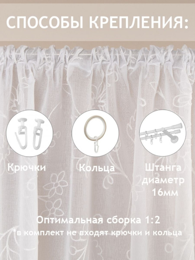 Такая штора может использоваться как плотный тюль, либо как легкая портьера.
