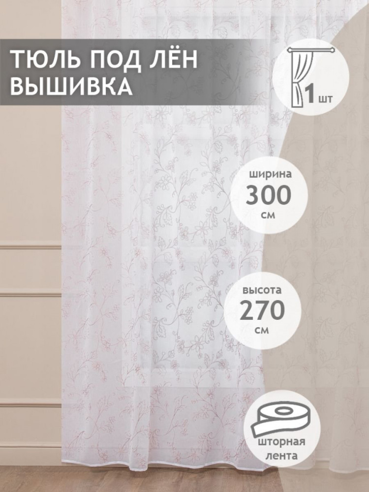 Тюль торговой марки Amore Mio изготовлен из ткани, структура которой имитирует натуральный лен. Тенденции оформления дома в натуральных тканях сейчас особенно актуальны, а изящная вышивка добавит яркий акцент в любой интерьер.