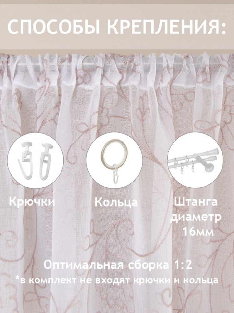 Такая штора может использоваться как плотный тюль, либо как легкая портьера.