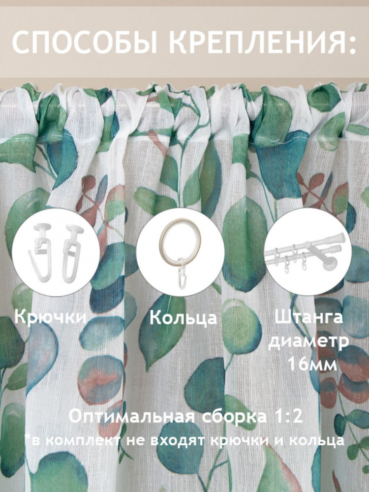 Такая штора может использоваться как плотный тюль, либо как легкая портьера.