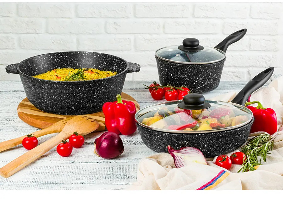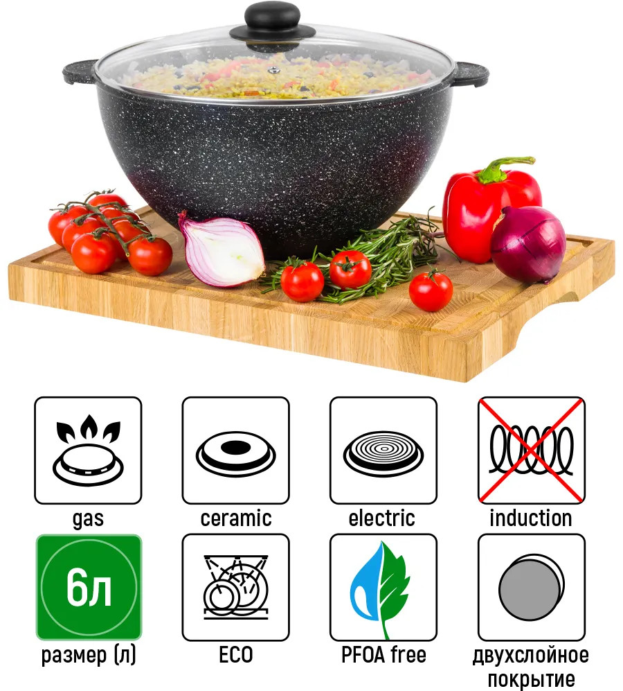Elan Gallery Казан с крышкой «Черный мрамор»