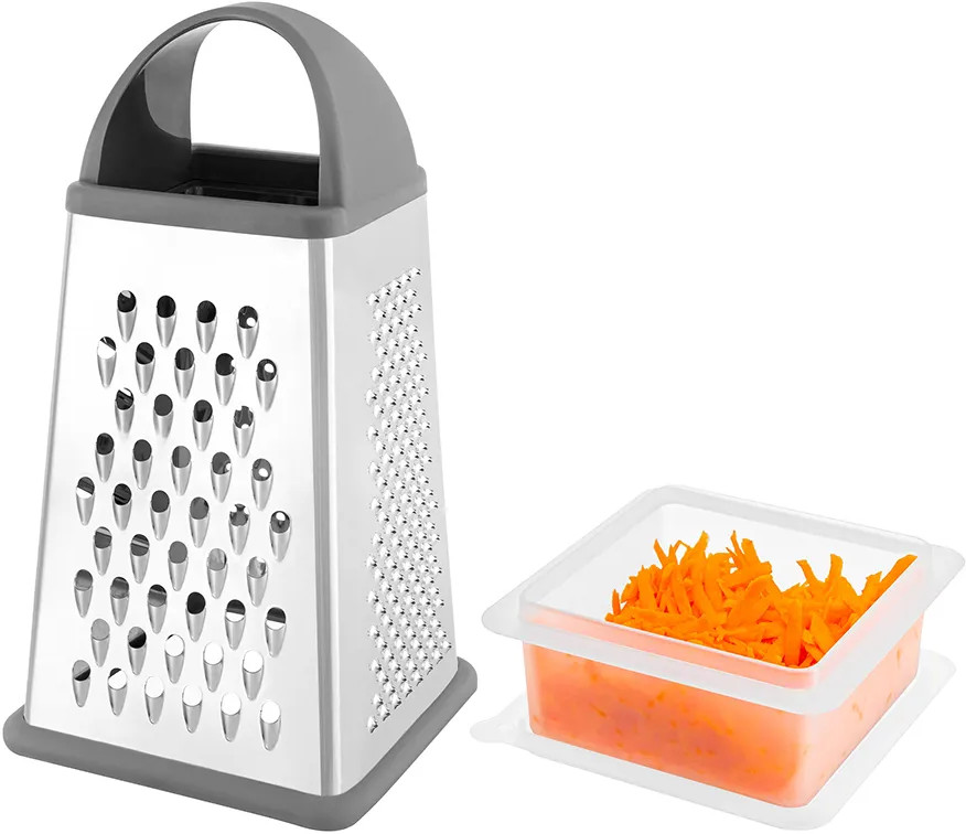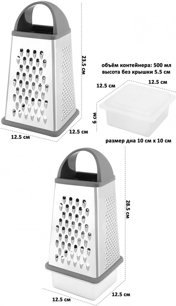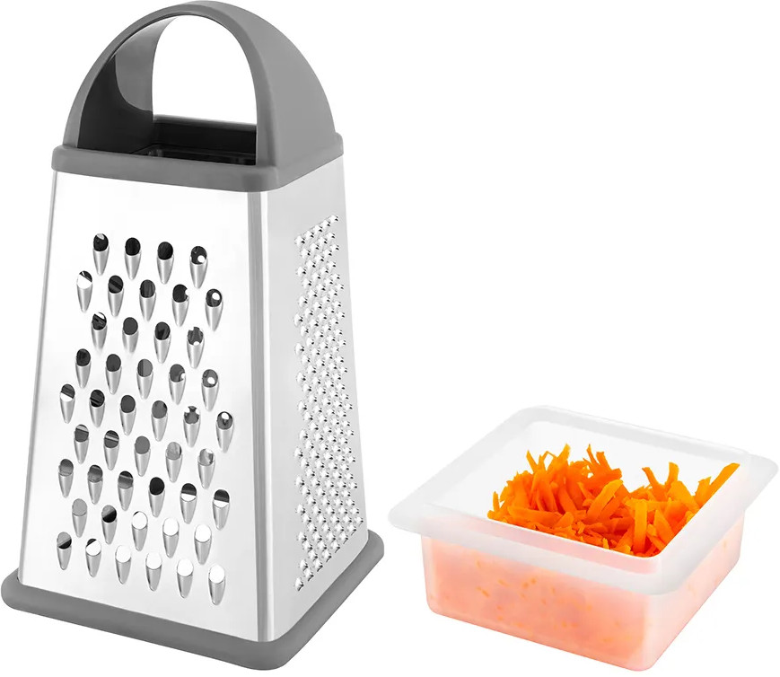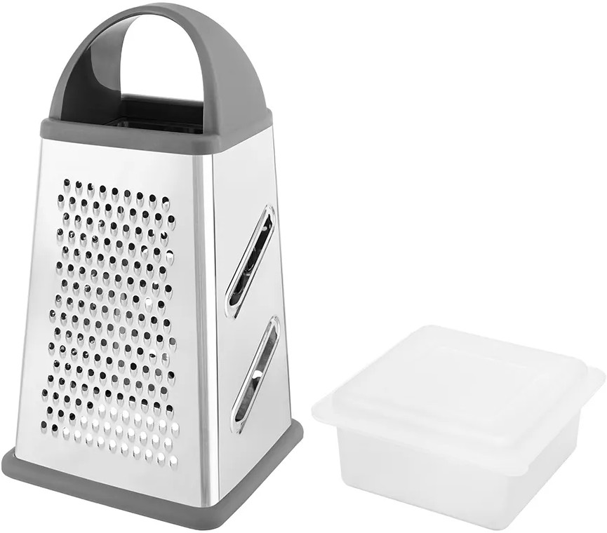 Elan Gallery Терка четырехсторонняя с контейнеромВ данный момент этот товар отсутствует в продаже. Возможно, у нас найдется аналогичный или похожий товар здесь. Терка четырехсторонняя с пластиковым контейнером имеет рабочие поверхности для разных задач. Шинкуйте, натирайте и измельчайте самые разные продукты: овощи, фрукты, сыры, масло, шоколад, имбирь и многие другие. Контейнер имеет крышку. Терка прочно фиксируется на контейнере. Устойчива и не скользит на любой поверхности благодаря прорезиненному основанию. Основание съемное: легко отмывается после использования. Терку удобно держать благодаря ручке. Изделие можно мыть в посудомоечной машине. Такая терка станет удобным дополнением вашей кухни и помощником в приготовлении множества вкусных блюд! |