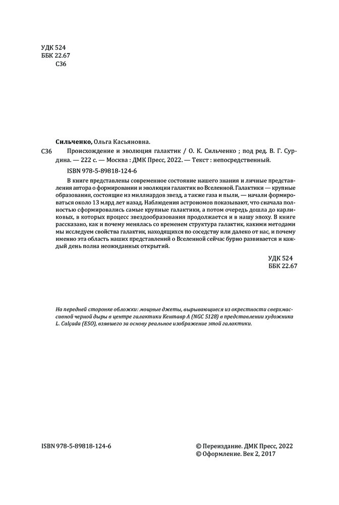 💳 Оплатить за товар можно при получении 🇰🇿 Есть бесплатная доставка по Казахстану от 1 дня 🎁 Копите бонусы с каждой покупки В книге представлены современное состояние нашего знания и личные представления автора о формировании и эволюции галактик во Вселенной. Галактики — крупные образования, состоящие из миллиардов звезд, а также газа и пыли, — начали формироваться около 13 млрд лет назад. Наблюдения астрономов показывают, что сначала полностью сформировались самые крупные галактики, а потом очередь дошла до карликовых, в которых процесс звездообразования продолжается и в нашу эпоху. В книге рассказано, как и почему менялась со временем структура галактик, какими методами мы исследуем свойства галактик, находящихся по соседству или далеко от нас, и почему именно эта область наших представлений о Вселенной сейчас бурно развивается и каждый день полна неожиданных открытий. |
