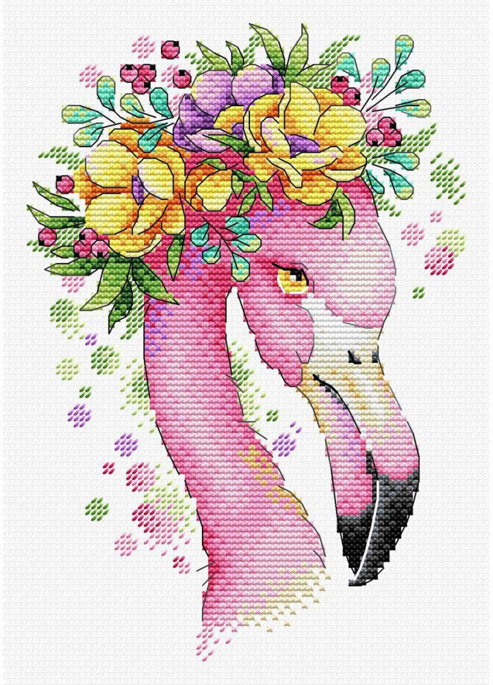 Хотите оживить блузку, фартук и другие однотонные вещи? Украсьте их вышивкой крестом, используя набор для вышивания «Летний фламинго». Подбирать схему, нитки и другие материалы не нужно — в упаковке есть все необходимое. Лучшая основа для такой вышивки — изделия из хлопка, льна, вискозы и других нескользящих тканей.