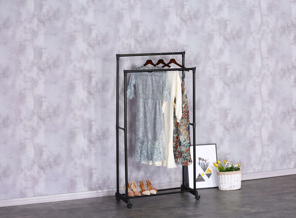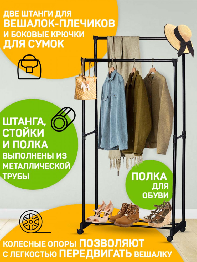 Sheffilton ВешалкаВ данный момент этот товар отсутствует в продаже. Возможно, у нас найдется аналогичный или похожий товар здесь. Компактная и удобная вешалка для гардеробной, ванной, детской, прихожей, кладовой. Поможет поддержать порядок в комнате и сэкономить свободное пространство. В вешалке есть полка для обуви, две штанги для вешалок-плечиков и боковые крючки для сумок, зонтов и пакетов. Это позволяет ее использовать в любой зоне помещения. Колесные опоры позволяют с легкостью передвигать вешалку. Штанга, стойки и полка выполнены из металлической трубы. Высота вешалки не регулируется. |