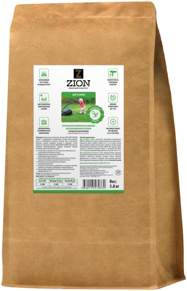 при посадке газона семенами: равномерно распределите цион по поверхности грунта, подготовленного для посева семян. Разрыхлите грунт, заглубив субстрат на глубину 5-7 см, посейте семена трав и обильно полейте водой. Рекомендуемая дозировка субстрата цион при посадке газона зависит от качества исходного грунта и составляет 200-500 г на м2. При восстановлении поврежденных участков до 700 г на м².
