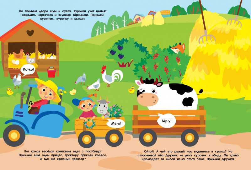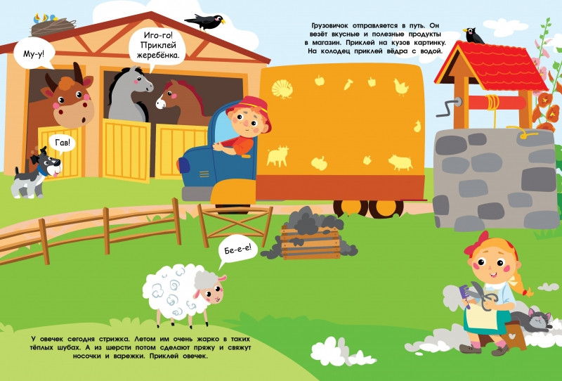 💳 Оплатить за товар можно при получении 🇰🇿 Есть бесплатная доставка по Казахстану от 1 дня 🎁 Копите бонусы с каждой покупки Серия: Многоразовые наклейки Приходи в гости на нашу ферму. Тут можно покормить домашних животных и узнать, как они говорят, подстричь овечек, собрать урожай, прокатиться на тракторе и отправить в магазин полезные продукты. С нашими многоразовыми наклейками будет очень интересно. Придумывай свои весёлые истории и приклеивай картинки снова и снова! |