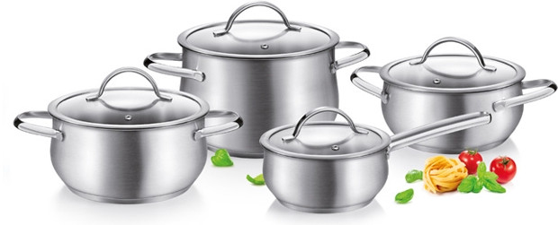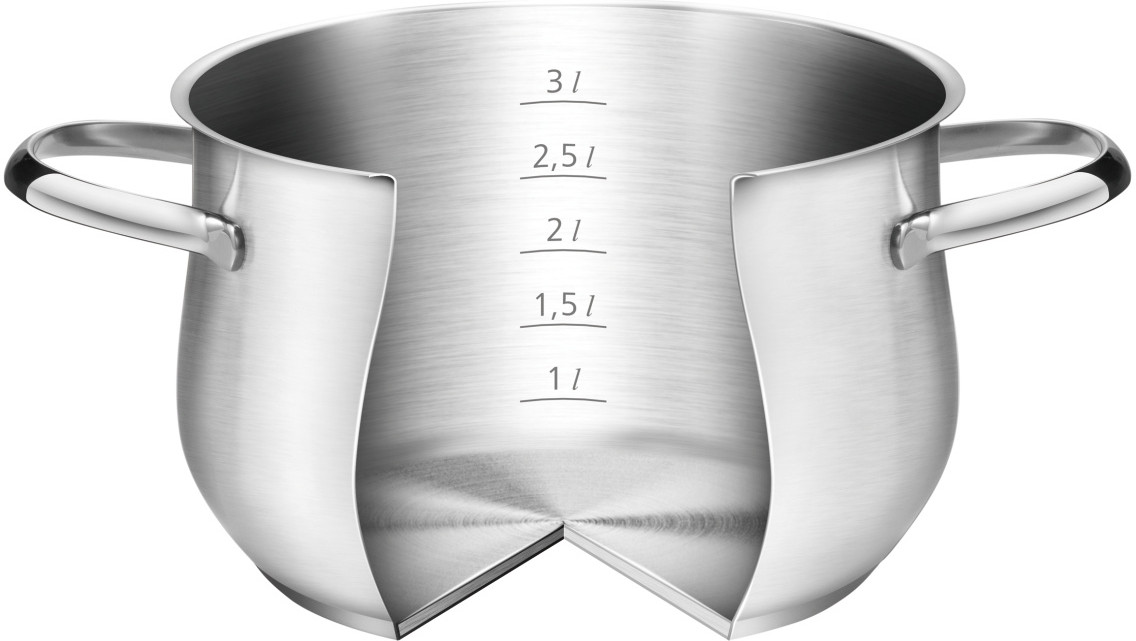 Современная кухонная посуда с крышками из стекло/нержавеющей стали, удобными ручками и трехслойным дном оснащена шкалой для измерения объёма жидкостей. Изготовлено из первоклассной нержавеющей стали. Подходит для всех видов плит, включая индукционные. Можно мыть в посудомоечной машине.