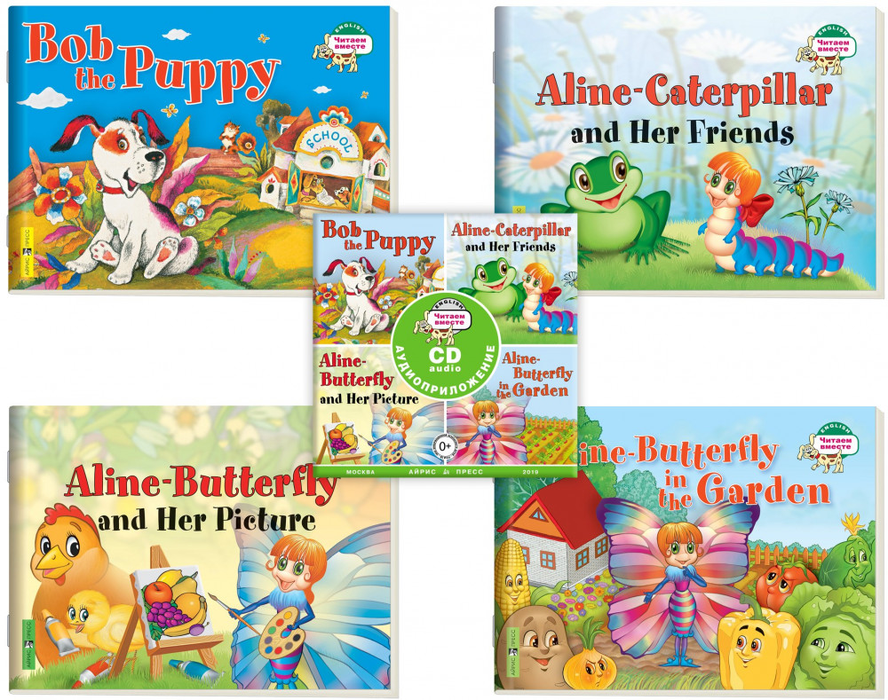 • Aline-Caterpillar and Her Friends (Гусеница Алина и её друзья). Рассказ о том, как маленькая гусеница превращается в прекрасную бабочку. Герои этой истории научат ребёнка здороваться и прощаться на английском языке, представляться по имени, говорить о том, что они или другие дети умеют делать, задавать вопросы.