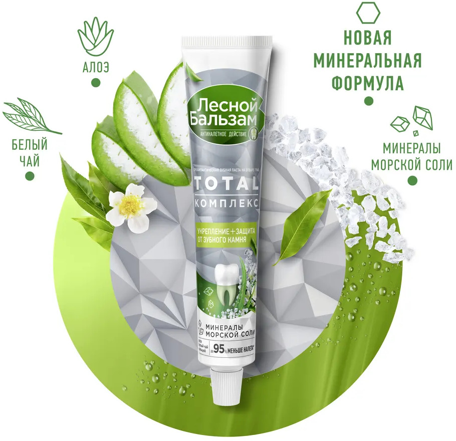 Лесной бальзам Зубная паста «Алоэ вера и белый чай»+23 приятный вкус хорошая чистка приятная текстура