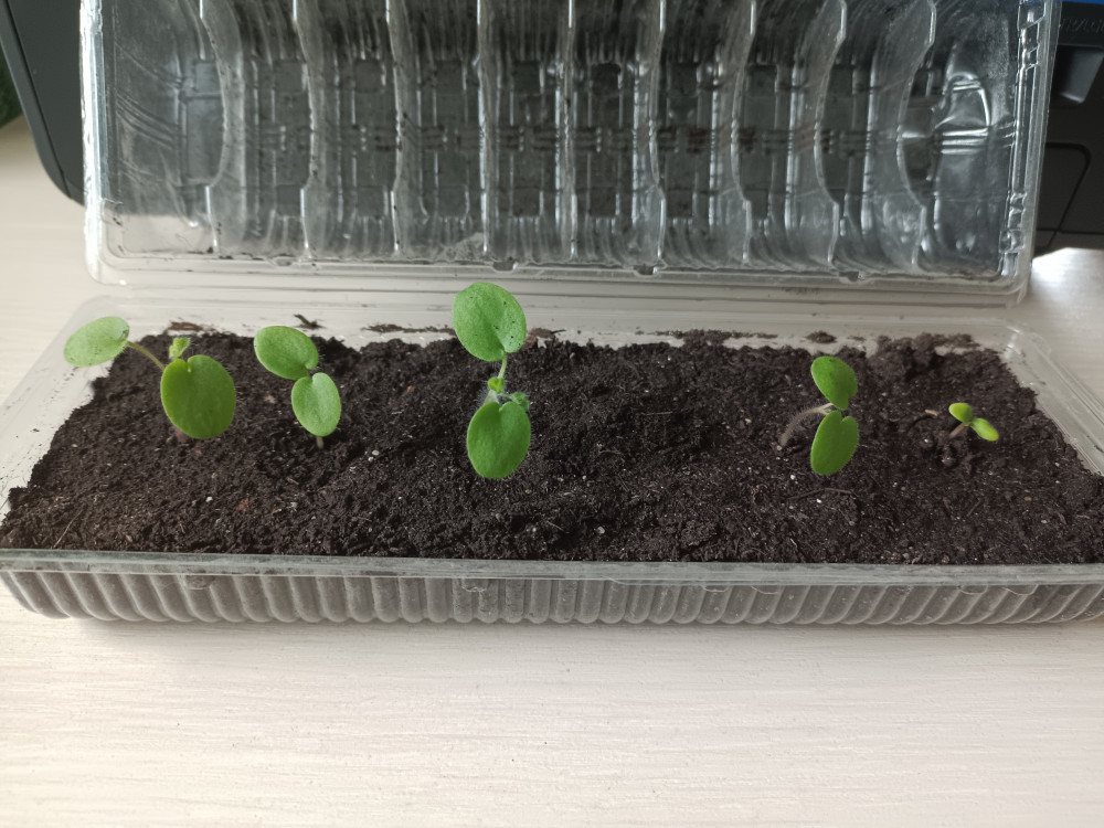 Заказала 2 упаковки, в каждой по три семечка, сеяла 1-го ноября. 3 семечка из одной упаковки взошли дружно, буквально через неделю после посева, а другие немного отстали и взошли только 2, одно семечко пропало. 5 из 6ти тоже неплохой результат. Фото прилагаю