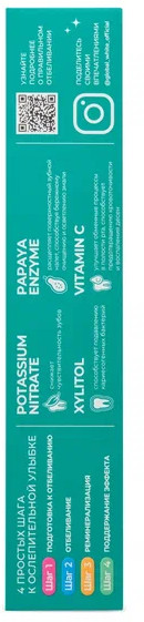 💳 Оплатить за товар можно при получении 🇰🇿 Есть бесплатная доставка по Казахстану от 1 дня 🎁 Копите бонусы с каждой покупки Низкоабразивная зубная паста Enzyme бережно осветляет эмаль и способствует снижению чувствительности. Экстракт папайи расщепляет поверхностный зубной налет, способствует бережному очищению и осветлению эмали. Витамин С улучшает обменные процессы в полости рта, способствует предотвращению кровоточивости и воспаления десен. Ксилитол подавляет рост кариесогенных бактерий. Зубная паста Enzyme является первым этапом (подготовка к отбеливанию) в комплексном уходе за зубами. |