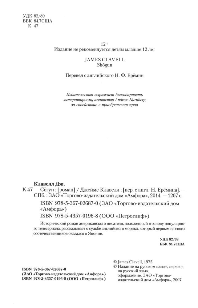 СегунВ данный момент этот товар отсутствует в продаже. Возможно, у нас найдется аналогичный или похожий товар здесь. Серия: Амфора Исторический роман американского писателя, положенный в основу популярного телесериала, рассказывает о судьбе английского моряка, который первым из своих соотечественников оказался в Японии. |