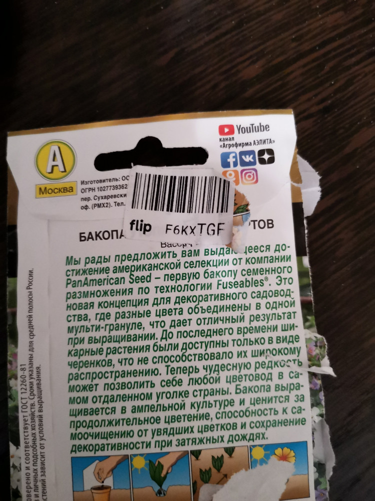 Бакопа «Утопия», смесь сортов+58 пустая пачка непрорастание