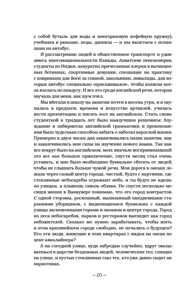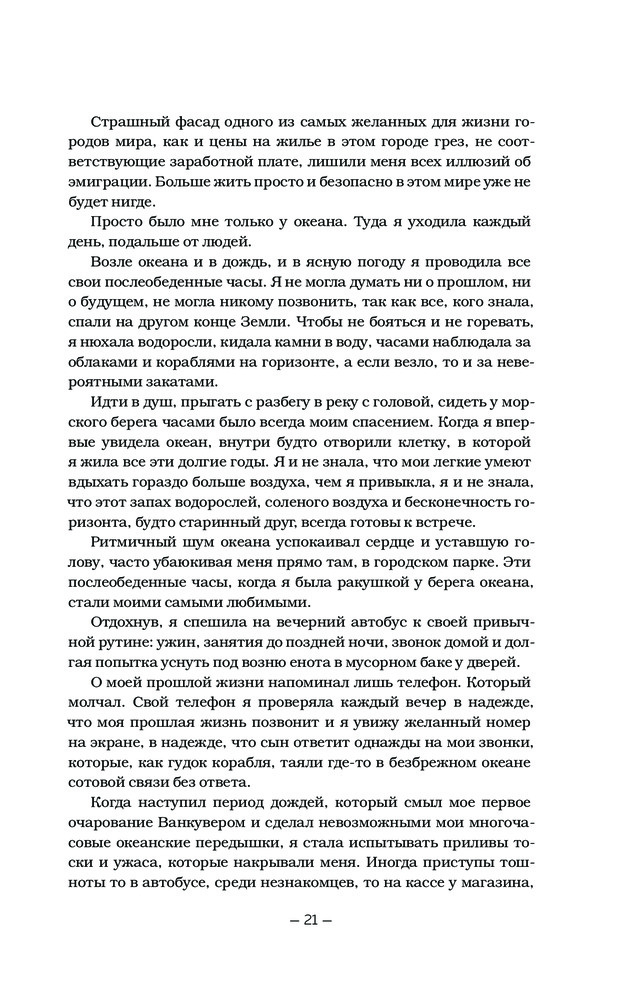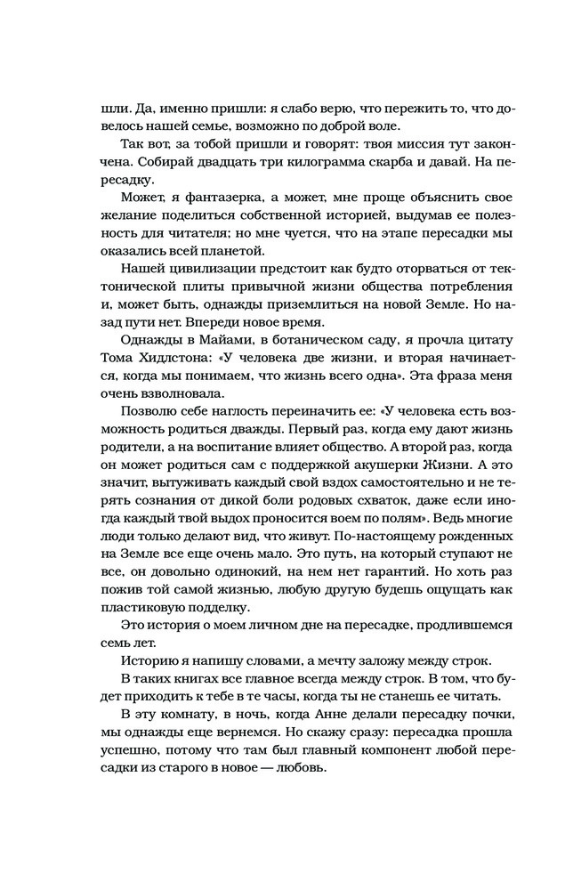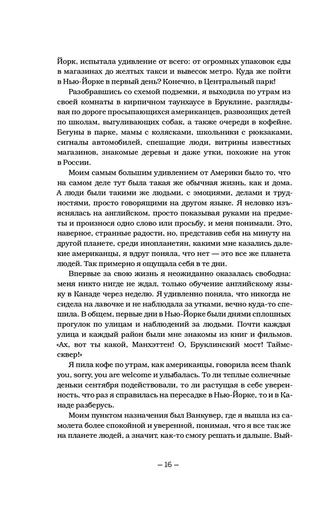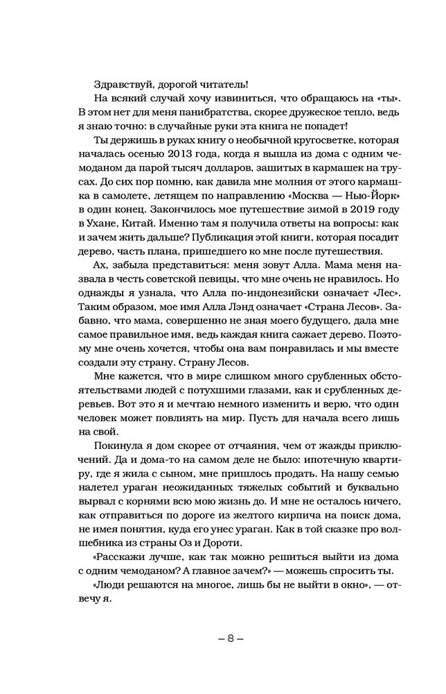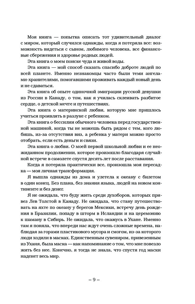 Книга «День на пересадке» - это не просто книга об интересных местах на нашей планете, это книга о скрытых возможностях человека, о том как путешествия, новые страны и люди могут изменить жизнь. Бывают ситуации, когда мы вынуждены принимать очень сложные, но в тоже время судьбоносные решения. Нашей героине пришлось уехать на другой континент, чтобы стать тем, кем она сейчас является. Крик души именно так я могу охарактеризовать книгу. Первую половину книги я переживала эмоционально очень сильно. Я даже представить не могу как Алла это всё вынесла. Когда у матери отбирают ребёнка, только потому что у нее трудности, вместо того, чтобы помочь - это так низко и подло. А когда человек имеет связи и вес в обществе - это еще становится и страшно. Как важное в такие моменты не сломаться, встретить на своем пути людей, которые просто подарят тепло и заботу. Понять и почувствовать, что ты её один в этом огромном мире - это дорогого стоит. Книга вдохновляет на поступки. После прочтения хочется что-то делать полезное, чтобы получать душевное удовлетворение. Тем более сейчас так нам этого не хватает🥺. Книгу читать рекомендую всем! Я думаю тут каждый найдёт что-то для себя: мотивацию, утешение, поддержку, заряд энергии, живые эмоции.