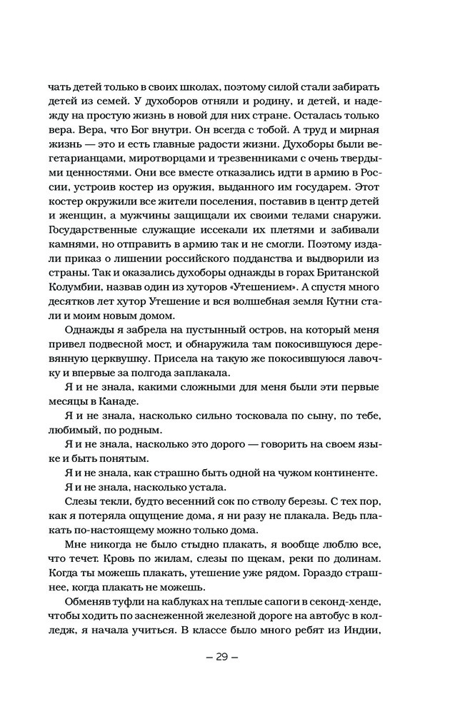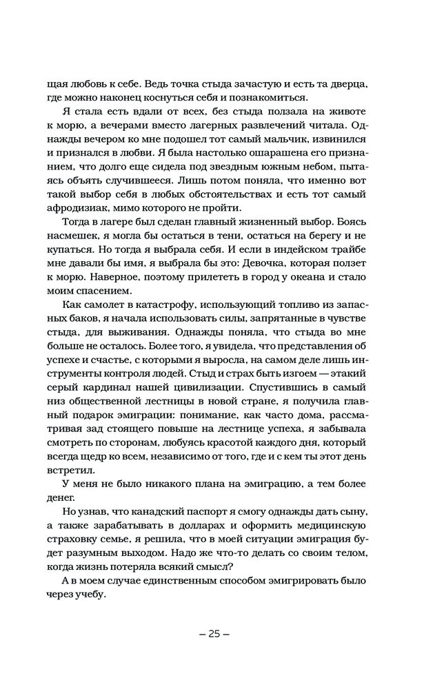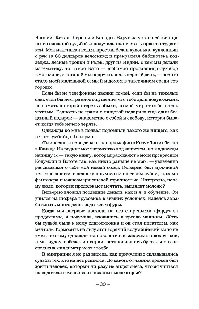 💳 Оплатить за товар можно при получении 🇰🇿 Есть бесплатная доставка по Казахстану от 1 дня 🎁 Копите бонусы с каждой покупки Серия: Истории о жизни и счастье Смерть и болезни случаются в жизни даже самых хороших людей. Но только не все хорошие люди находят силы с ними бороться. Муж забрал ребенка без возможности с ним видеться, смертельно заболел дедушка, у сестры отказали почки, любимый мужчина уехал в другую страну, в душе наступило полное отчаяние. Жизнь стала бесконечной чередой проблем, из которых не было выхода. Тогда автор приняла решение уехать. Она зашила в карман на трусиках оставшиеся от продажи квартиры деньги и купила билет в Канаду. Билет в один конец. Эта реальная история о путешествиях, борьбе с трудностями и поиске своего пути. Автор посетила более 60 стран, познакомилась с духоборами и нашла свое призвание в лесотерапии. Автор считает, что в мире слишком много срубленных обстоятельствами людей, с потухшими глазами, так же как и срубленных деревьев. Она верит, что один человек может повлиять на мир. Пусть даже сначала на свой. |