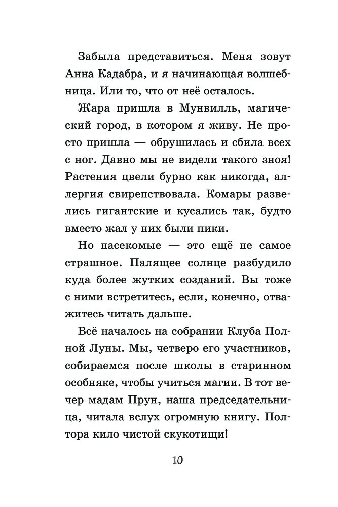 Серия: Детск. Анна Кадабра. Приключения необычной девочки-волшебницы Уф! Ну и жара в Мунвилле! Даже уроки волшебства отменили! И чем теперь заняться? Пожалуй, самое время охладиться: неподалёку как раз есть пруд. Правда, в городке ходят слухи, что там водится неизвестное существо. Ой, ну что за детские сказки! Анна и её друзья таким глупостям не верят! Но что, если это вовсе не слухи? Серия-бестселлер для всех поклонников Изадоры Мун! Историю об Анне Кадабре любят более 250 000 детей по всему миру! С главной героиней никогда не бывает скучно: она всегда попадает в смешные ситуации. История поможет легко полюбить читать: много юмора, интересный сюжет и яркие иллюстрации. Каждая книга — это самостоятельная история, начинай с любой. |