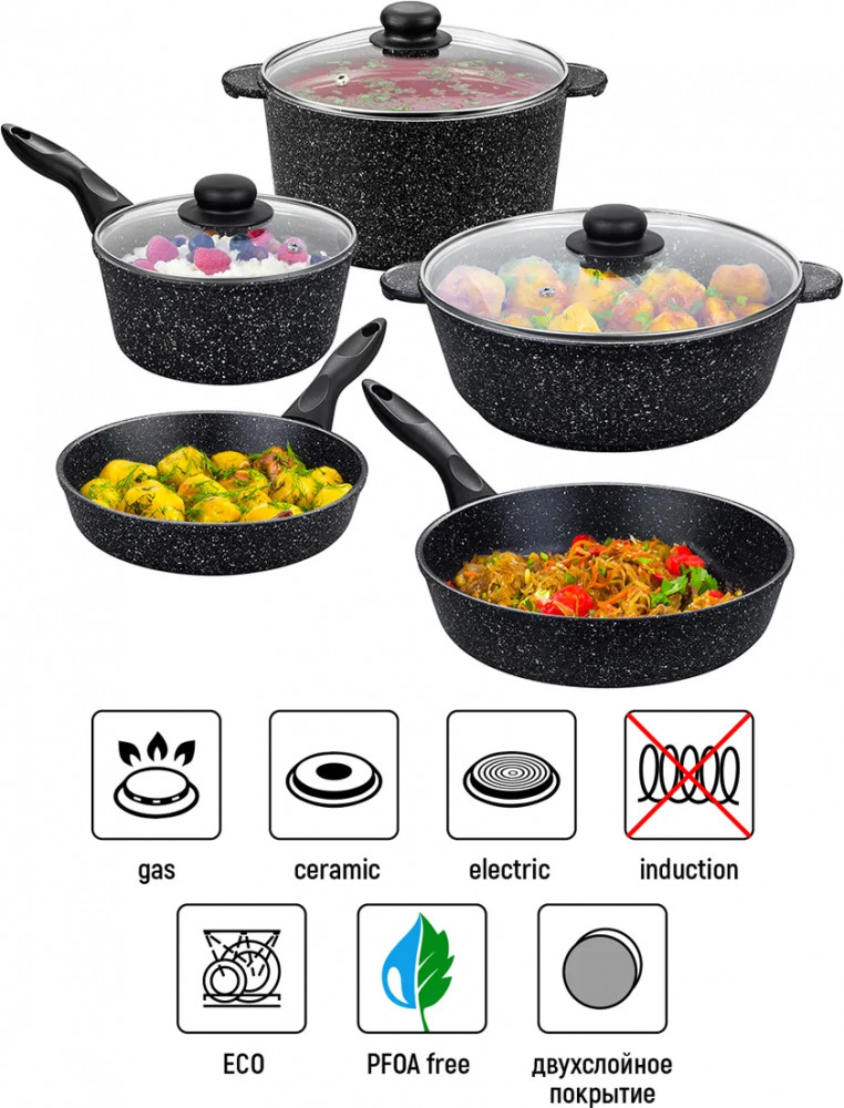Elan Gallery Набор посуды «Чёрный мрамор»