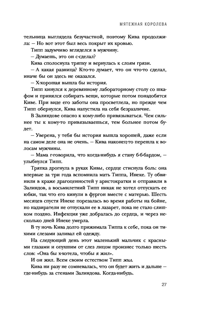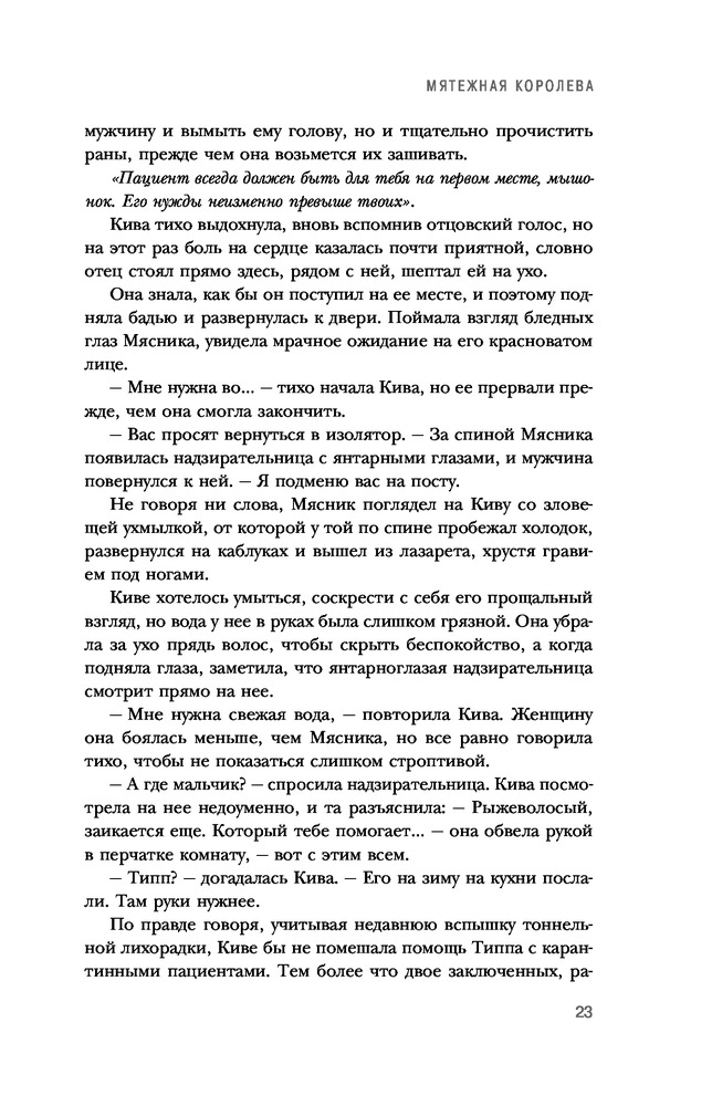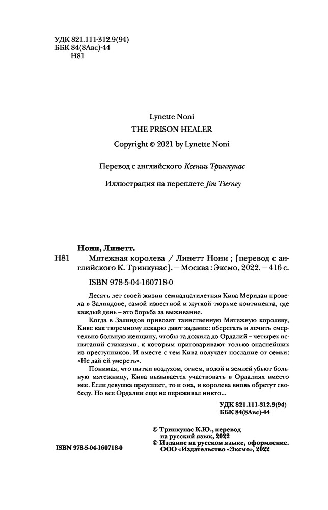 Мятежная королеваВ данный момент этот товар отсутствует в продаже. Возможно, у нас найдется аналогичный или похожий товар здесь. Серия: Тюремный лекарь. Бестселлер Линетт Нони Десять лет своей жизни семнадцатилетняя Кива Меридан провела в Залиндове, самой известной и жуткой тюрьме континента, где каждый день — это борьба за выживание.Когда в Залиндов привозят таинственную Мятежную королеву, Киве как тюремному лекарю дают задание: оберегать и лечить смертельно больную женщину, чтобы та дожила до Ордалий — четырех испытаний стихиями, к которым приговаривают только опаснейших из преступников. И вместе с тем Кива получает послание от семьи: «Не дай ей умереть». Понимая, что пытки воздухом, огнём, водой и землёй убьют больную мятежницу, Кива вызывается участвовать в Ордалиях вместо неё. Если девушка преуспеет, то и она, и королева вновь обретут свободу. Но все Ордалии ещё не переживал никто... |
