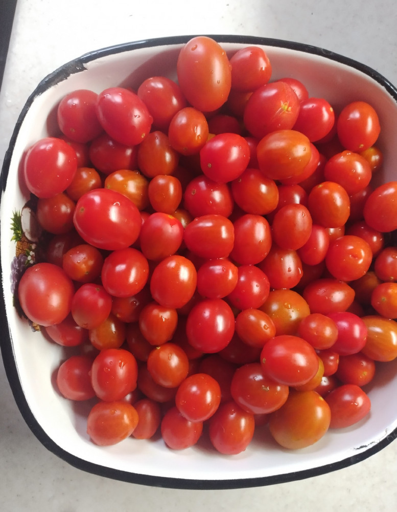 Долго искала помидорки черри. Нашла. Взошли все семена абсолютно,кустики хорошо плодоносят. Сладенькие. При засолке- их тонкая шкурка лопается но в банке смотрятся красиво.
