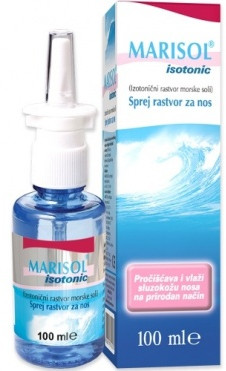 Марисоль изотонический — изотонический раствор морской соли. Восстанавливает естественную влажность носа, способствует к самоочищению, защищает от сухости и механического раздражения (дым, пыль, грязь и т.д.) Регулярное впрыскивание Марисоля изотонического уменьшает возможность инфекции верхних дыхательных путей.